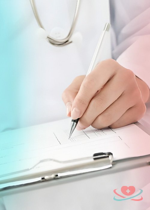 Доктор заполняет договор. При желании клиента предоставляются лицензия центра, документы доктора.